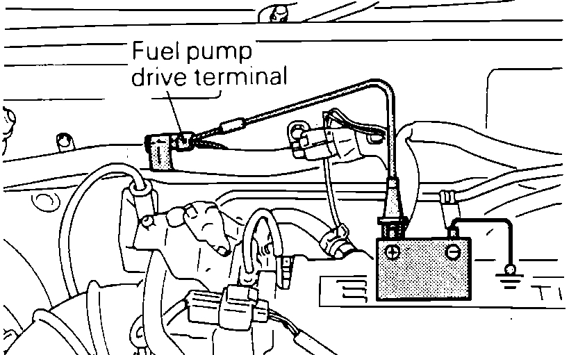 5. Apply battery power to the fuel pump drive terminal to activate the fuel pump. With fuel pressure applied check that no fuel is leaking at any of the connections.