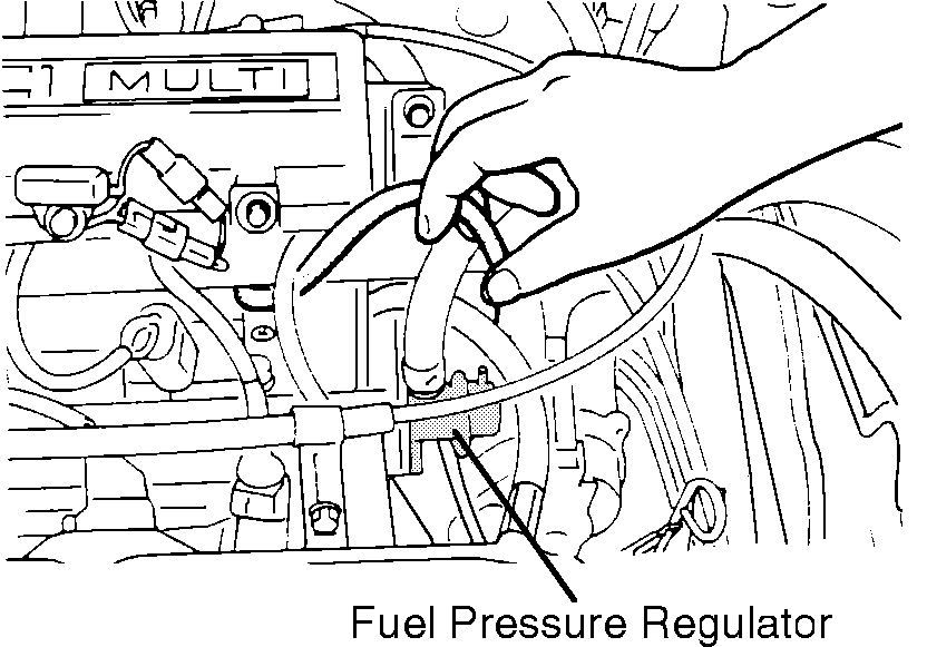 6. Disconnect the vacuum hose from the pressure regulator, and plug the hose end. Measure the fuel pressure at idle.