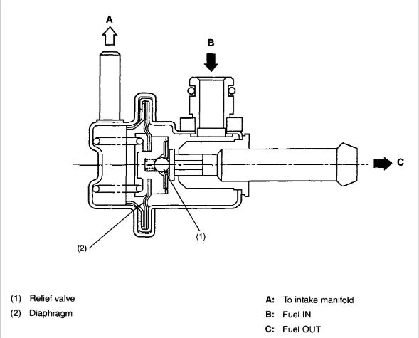 The regulator is actuated via engine vacuum. If you look at the attached pic, engine vacuum is supplied via letter A. What to do is first, remove the vacuum hose and check to see if there is any evidence of fuel in it. If there isn't, inspect the vacuum hose to make sure it is in good condition and not cracked, or disconnected.