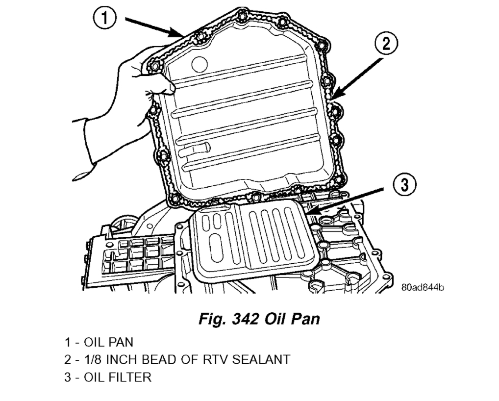 6. Remove oil pan (Fig. 342).