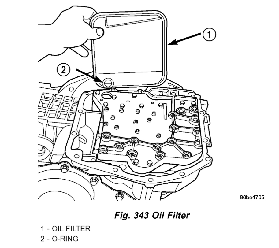 1. Install Transmission Range Sensor (TRS) to the valve body and torque retaining screw (Fig. 343) to 5 Nm (45 inch lbs.).