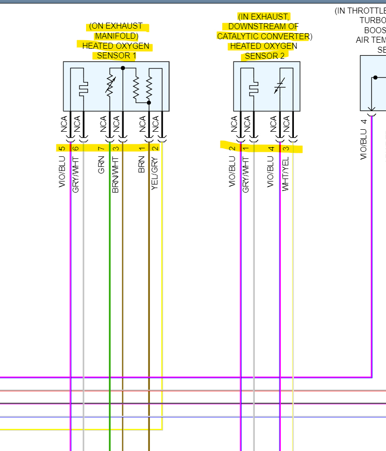 Hello, are you getting certain codes for either oxygen sensor? There are 2 in this vehicle. I will post diagrams for both. But the front oxygen sensor is a pretty advanced sensor, it has a built-in temperature sensor along with a heater circuit which all oxygen sensors have. So, if you are getting a check engine light and certain code, it would be good to look up the code setting criteria for them. And is this a 2.0-liter engine?