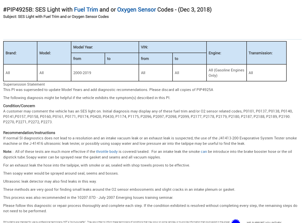 There is also a Technical Service Bulletin about other causes of Oxygen sensor codes (5th diagram).