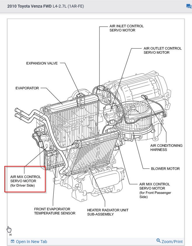 Okay, so I tried to be an investigator and actually found the driver side blend door actuator in my Toyota Venza. It is located on the driver side of HVAC. Need to go under the crawling space underneath the driver side. I had to lay flat on my back, looking all the way up. My head was almost resting on the accelerator pedal. No need to remove any panel or anything. There are two small Phillips screw holding it. One screw is visible but another screw is absolutely hidden as it’s on the top side. I just unscrew that invisible screw by feel of it. Detach the cable and it comes out.