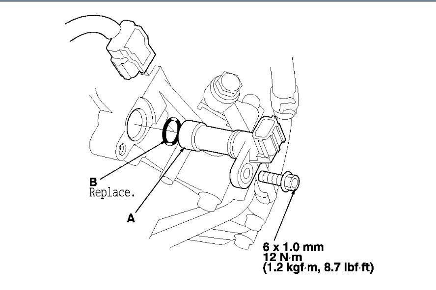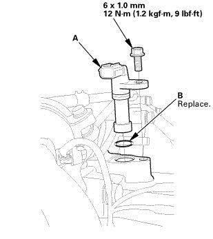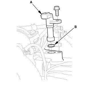 1. Install the output shaft (countershaft) speed sensor (A) using a new O-ring (B).