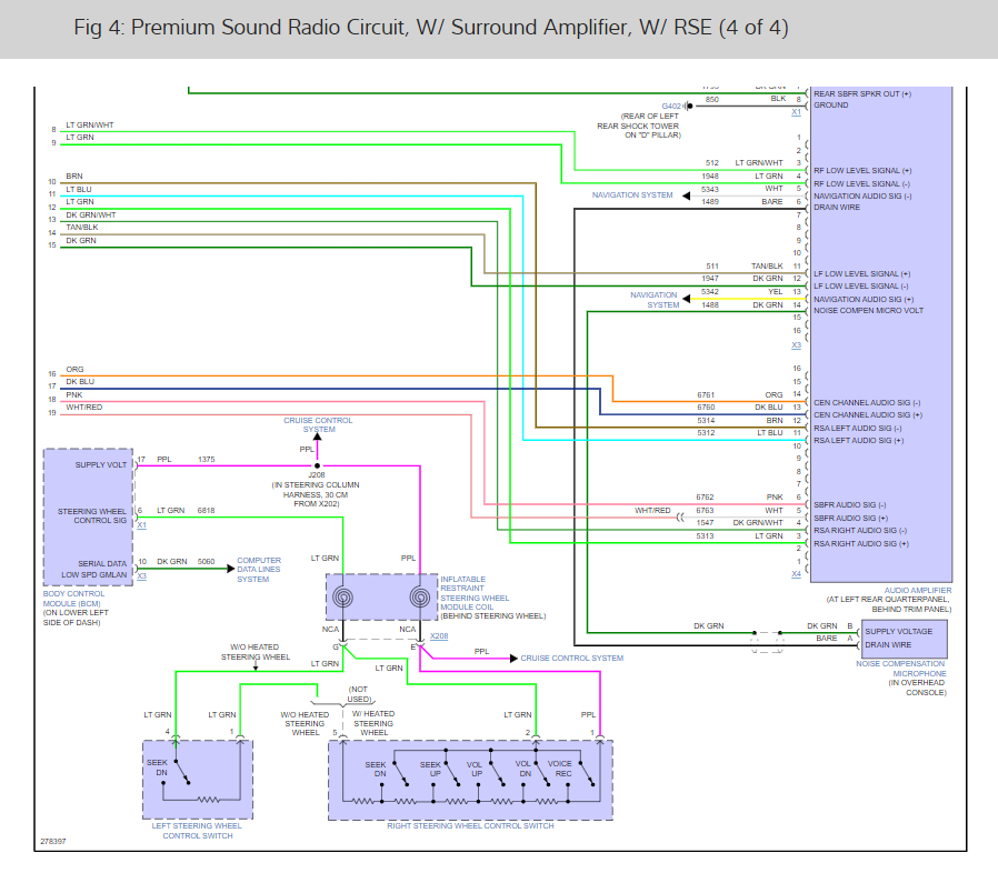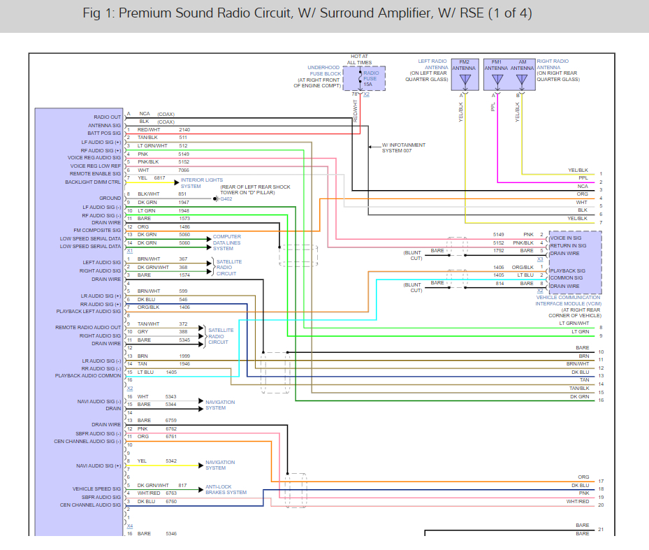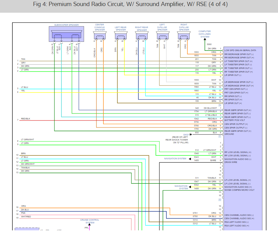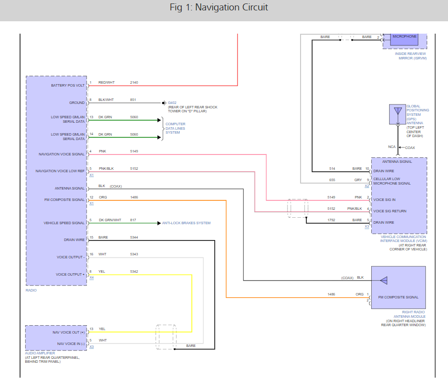 The VSS signal wiring from the ABS system (dark green and white wire) I would think this information is available in the CAN system which is where the NAV system would pick it up. It should be present in the radio/Navi wiring harnesses. Here are the wiring diagrams for the NAV and radio I have found to help you with the job. Check out the diagrams (below). Let us know what happens and please upload pictures or videos of the problem.