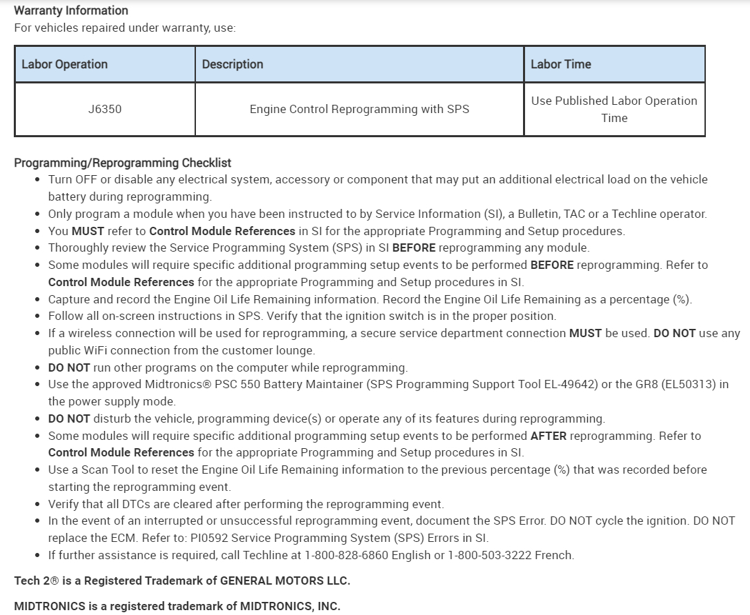 On a side note, I'm note sure if you have On Star in your vehicle, but they are doing over the air ECM updates now. If you don't have On Star then don't worry about it.