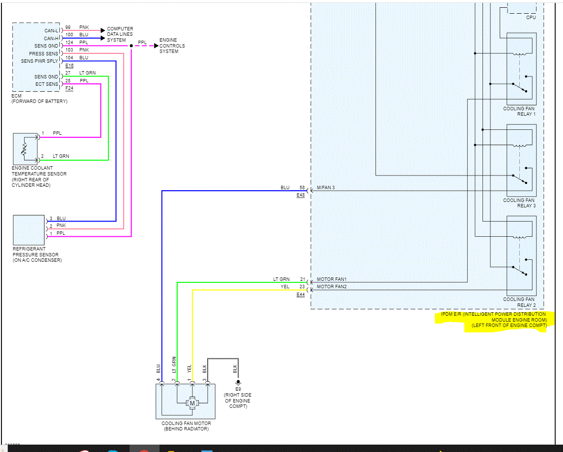I attached the wiring schematic below. I tried looking up a pic of the IPDM, but it isn't provided in my manual. There should be a label on the lid of the box.