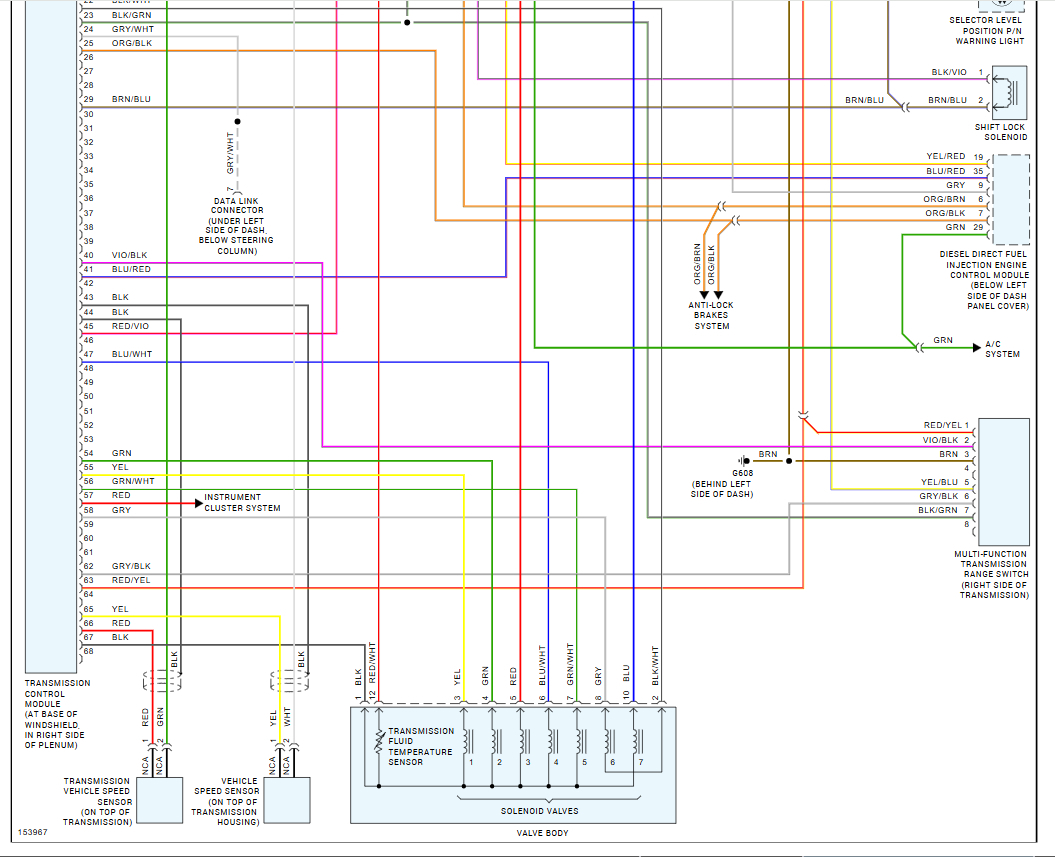 Swapping 01m into another car, thought I had all the wiring figured; can't get communication with TCM I believe I cut a wire thats needed, please provide a diagram of pinout
