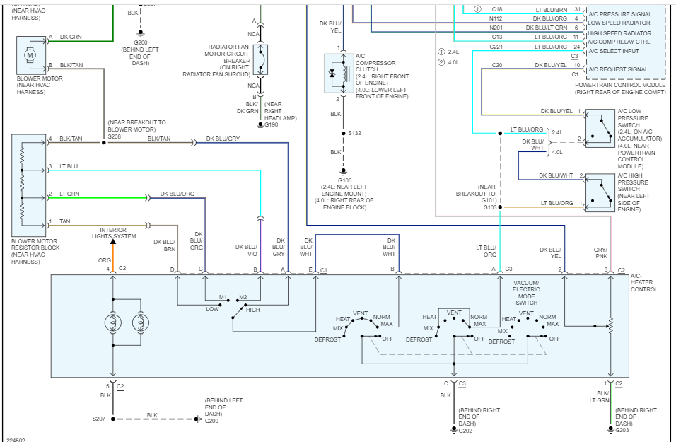 My blower motor fan switch stopped working and the back is melted. I got a new climate control panel, but the female side of the blower motor wire harness is also melted. I cut it off and put new lugs on, but it still does not work. I need to verify I plugged the wires in correctly, and then potentially look up stream for other failures. And diagrams or wisdom would be much appreciated. The 05/'06 climate controls are especially unique *cough*.