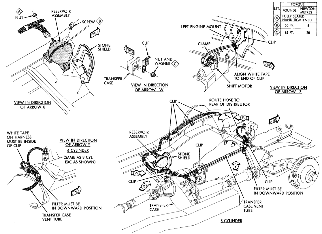 There is a loose end of a vacuum hose near the heater box that appears to go under the left of the truck and joins the hose bundle that loops over the transfer case and back up the right side. There are also a pair of vacuum solenoids on the right inside fender that are not connected to anything on two of the hose nipples. The transfer case does shift properly, and the engine seems to start and run well. I will include photos.