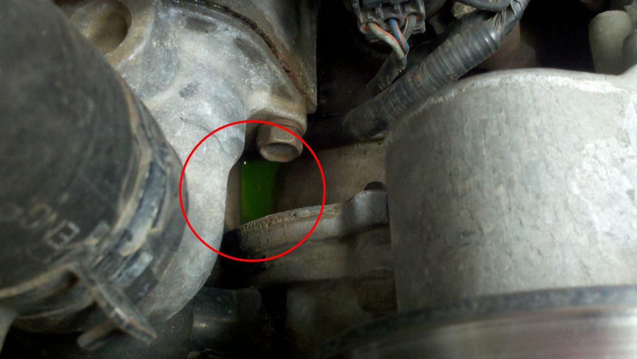 I can't find the leak. It's somewhere around the top right side of the water pump. I'm not sure if I need to change the pump or the timing chain cover gaskets or both. When the radiator is full and thermostat is open I have no overheating issues and the heater works wonderfully. But the water gets low from the leak and I know it's time to add water when the heater quits working and the temperature gauge goes up. That's the best I can describe it.