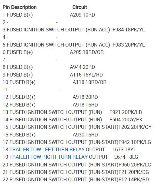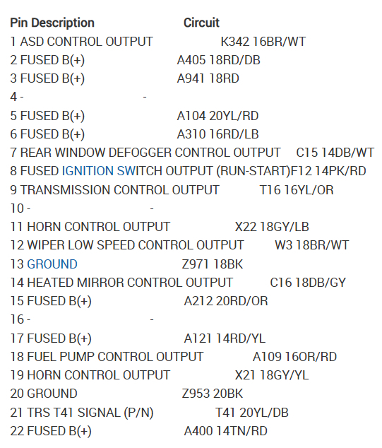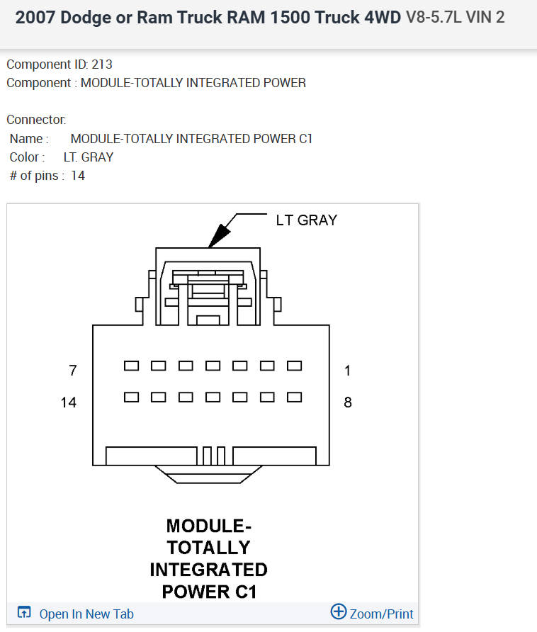 I’ve narrowed down my issues to the TIPM and fractured pins due to corrosion. Replacing the TIPM is outside of my financial capabilities at the present moment. I will need to place jumpers for the short-term solution. There is also a broken connector from the original tech/person when they are in it they broke the bail on the “brown” (I think) connector and need to address that also, long story short, I need a pinout diagram for the TIPM to an 07 Ram 1500 5.7 Laramie. Thank you very much.