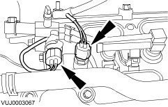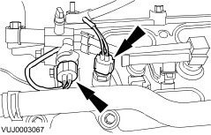 1. Disconnect the engine coolant temperature (ECT) and fuel temperature sensor (FTS) electrical connectors.