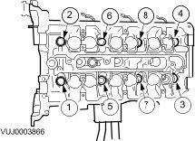 NOTE: Tighten the bolts in the indicated sequence in six stages.