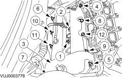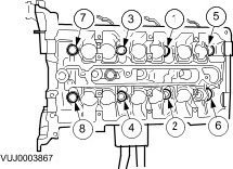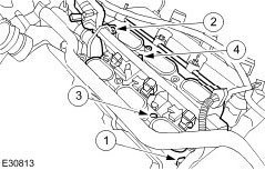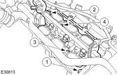 - Tighten the retaining bolts in the sequence shown in two stages.