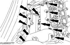 7. Remove the fuel injection supply manifold and lower intake manifold.