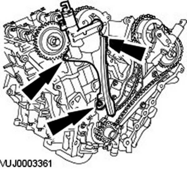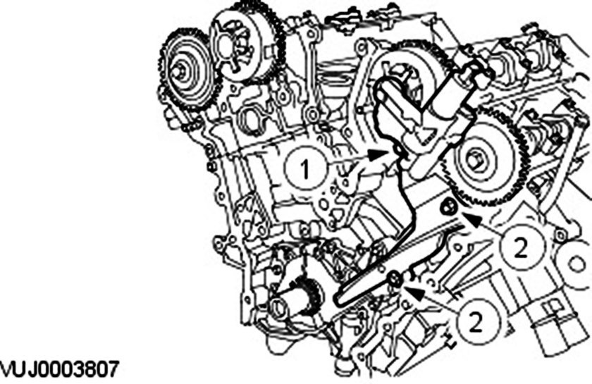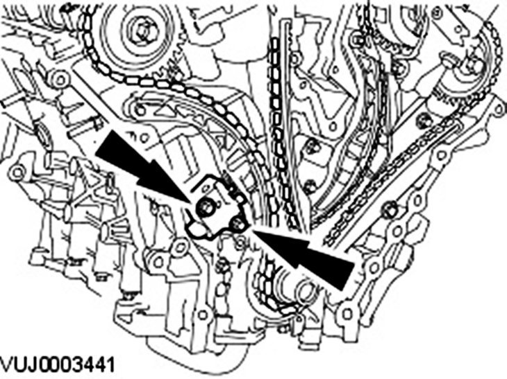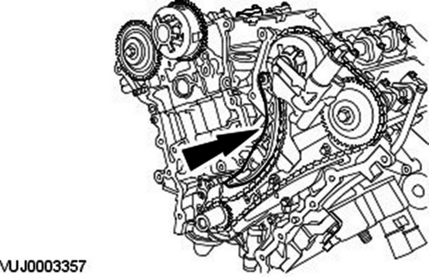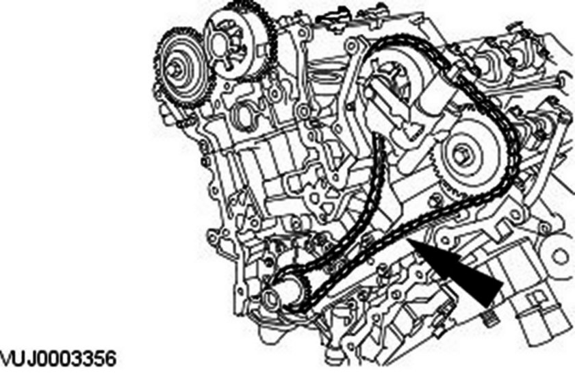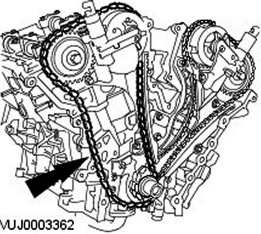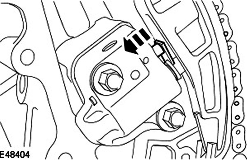 11. CAUTION: Do not manually adjust the timing chain tensioner.