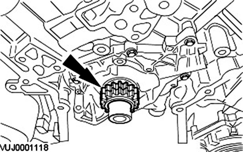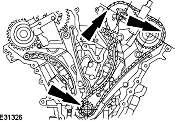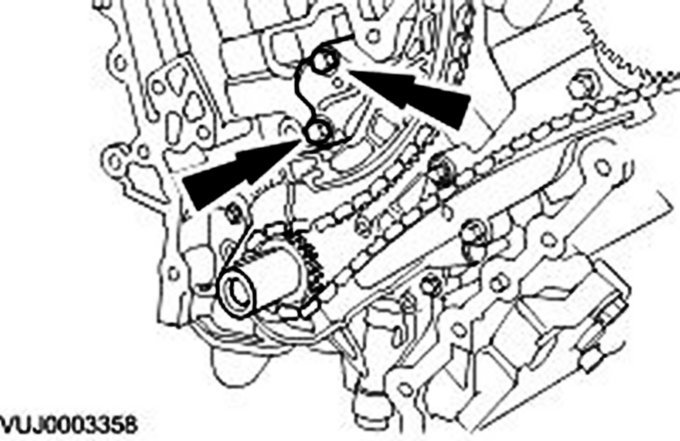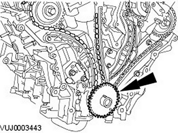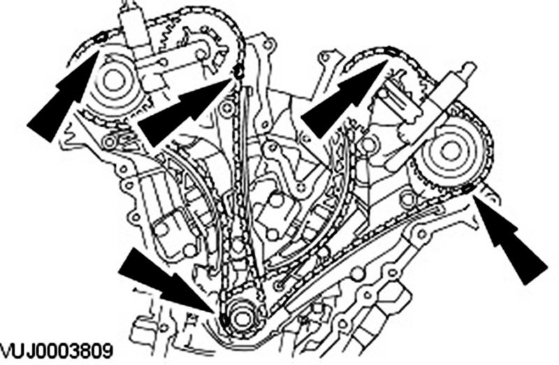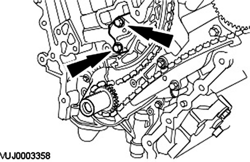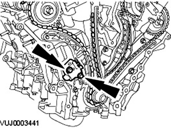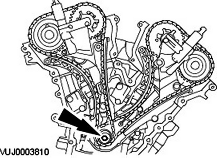 11. CAUTION: Do not manually adjust the timing chain tensioner.