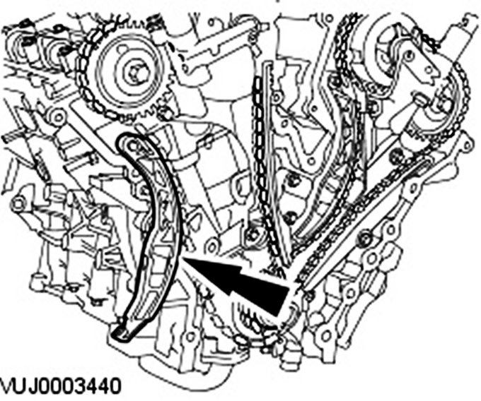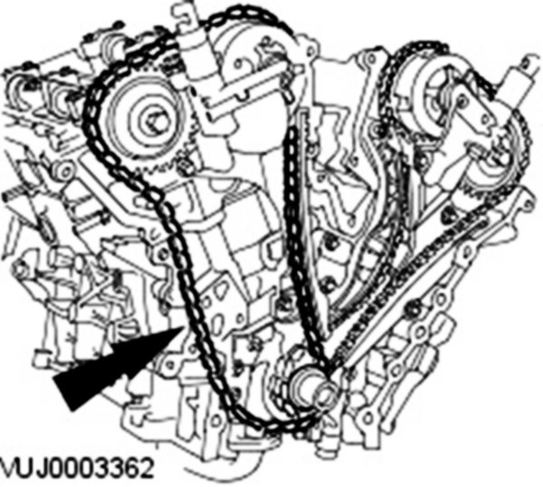 CAUTION: Do not manually adjust the timing chain tensioner.