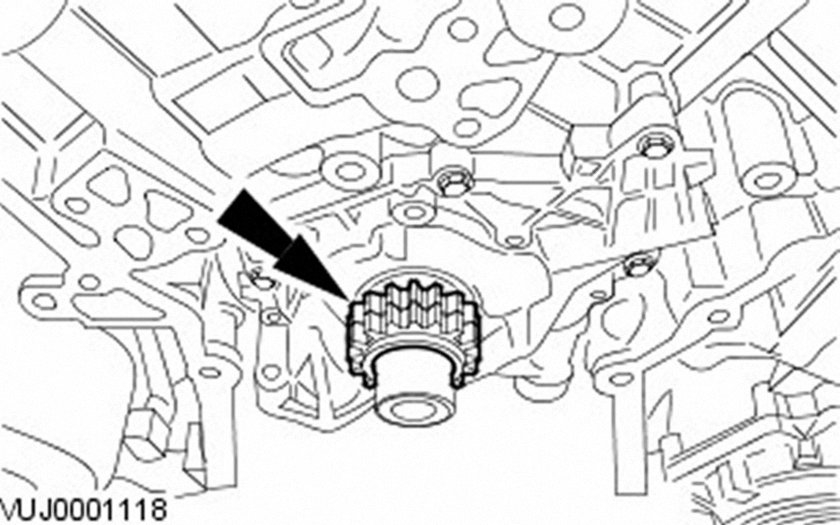 21. CAUTION: Make sure the CKP sensor pulse wheel is correctly installed with the missing tooth aligned to the crankshaft keyway.