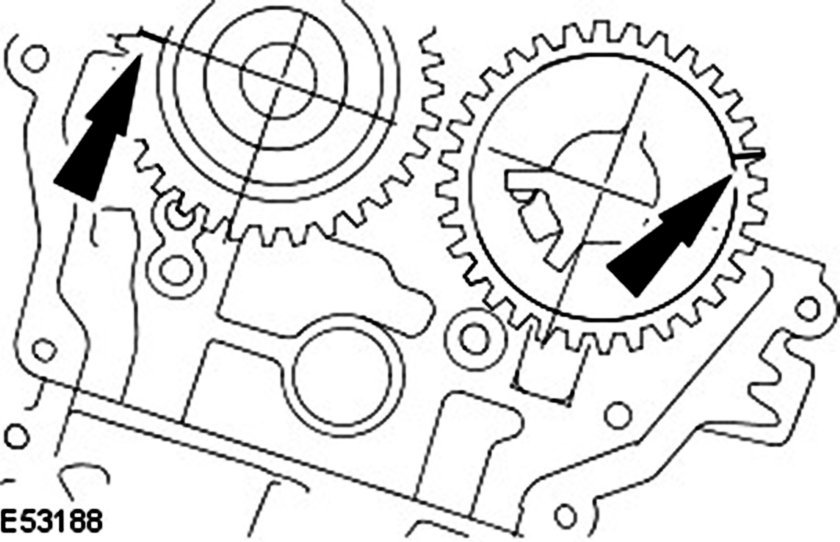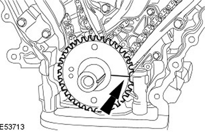 18. CAUTION: Make sure the right-hand timing chain alignment marks have remained correctly positioned to the camshaft sprocket and crankshaft sprocket alignment marks.