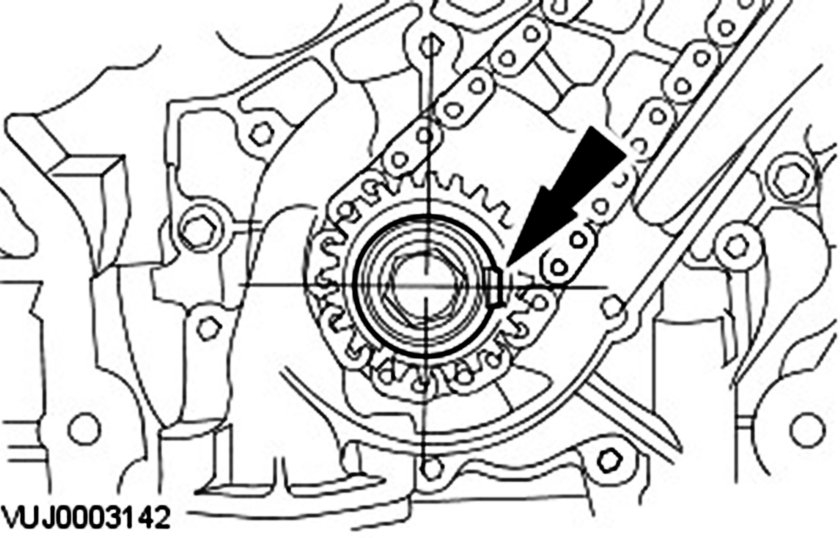 CAUTION: Make sure the timing chain alignment marks are correctly positioned to the crankshaft sprocket and camshaft sprocket alignment marks.