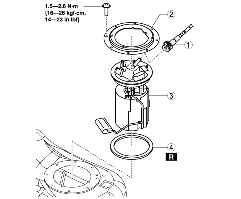 Fuel is very flammable liquid. If fuel spills or leaks from the pressurized fuel system, it will cause serious injury or death and facility breakage. Fuel can also irritate skin and eyes. To prevent this, before performing the fuel pump unit removal/installation, always complete the "Fuel Leak Inspection After Fuel Pump Unit Installation".