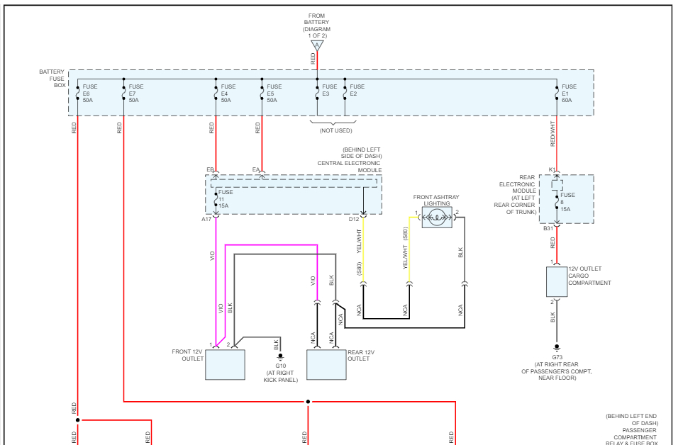 I rechecked fuse #11 under the steering column (fuse diagram says it is for the 2 12 v receptacles that are not working) and the 15 a fuse looked intact, but I couldn’t get the test light to light up.