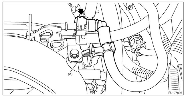 1. Disconnect the quick connector on the fuel delivery tube from the fuel pipe assembly, and remove the clip (A) securing the fuel delivery tube to the fuel pipe assembly.
