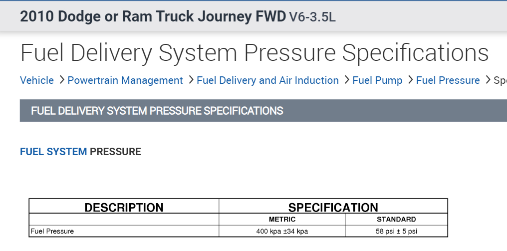 You will need a fuel pressure gauge to do this, but if you don't have one, most parts stores will lend one to you. Also, I attached the manufacturer's fuel pressure specifications below.