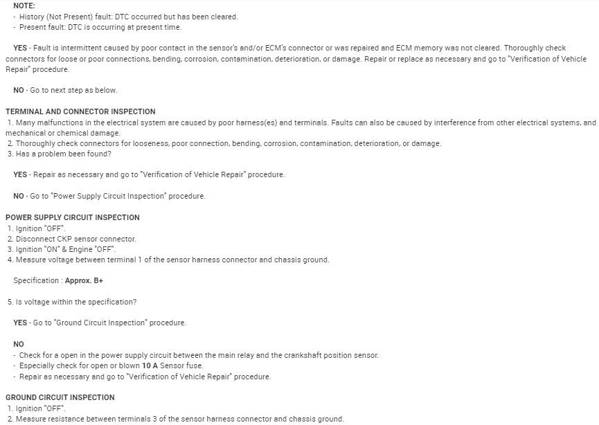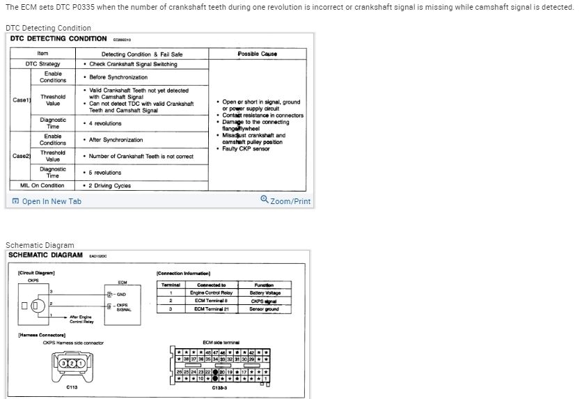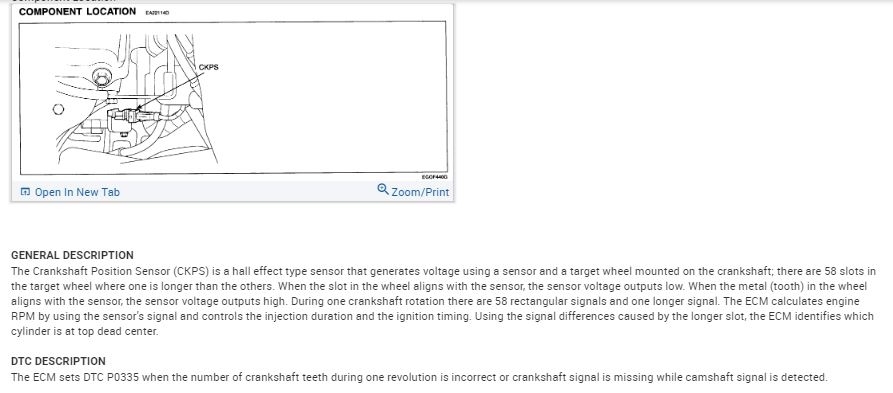 Also, did you do any diagnostic testing before replacing the sensor (such as checking the wiring for shorts, etc)? I ask because a short circuit or misadjusted sensor can also cause the p0335 code. I'm going to attach AllData's instructions on diagnosing the p0335 code in the images below. Go through it and do any tests that you haven't already done. As a matter of fact, I'd suggest just doing all of it, even if you've already done some of it. It never hurts to recheck your own work.