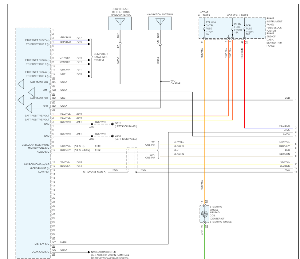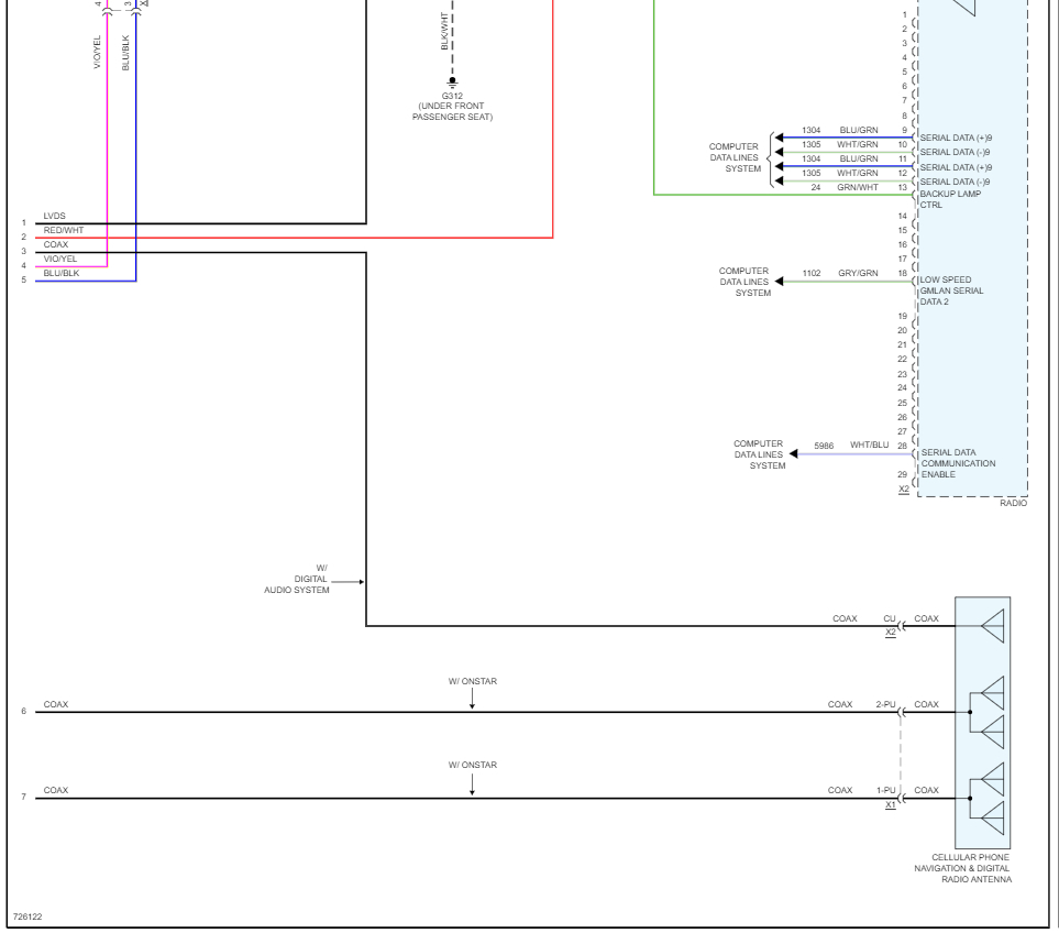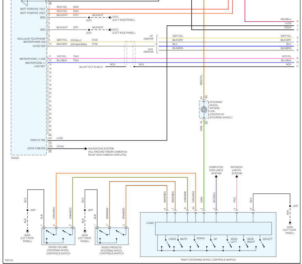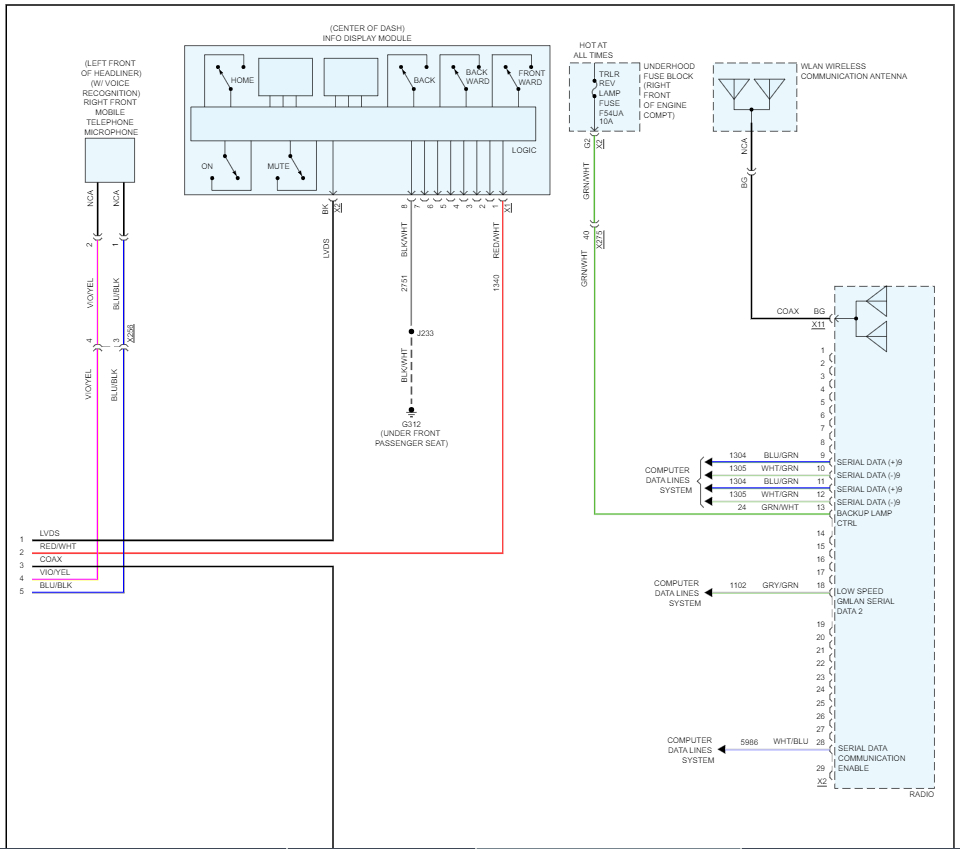 I have seen the info screen go bad due to heat inside the cab (windows up in the summertime). It sounds like the radio has gone out, does the info screen work for other functions? Here are the radio wiring diagrams so you can see how the system works. Check out the images (below). Let us know what happens and please upload pictures or videos of the problem so we can see what's going on.