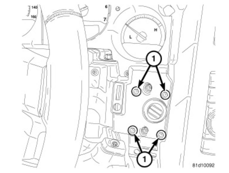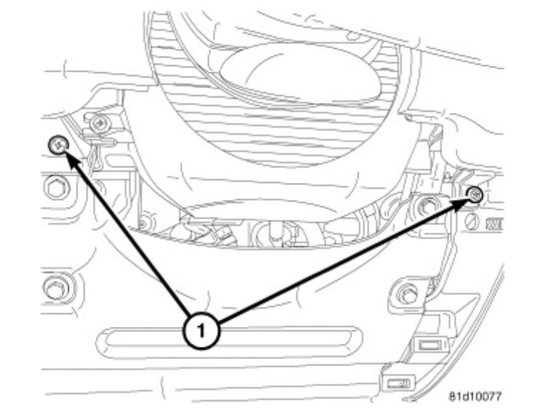 3. Remove the two screws (1) from the lower instrument cluster trim.