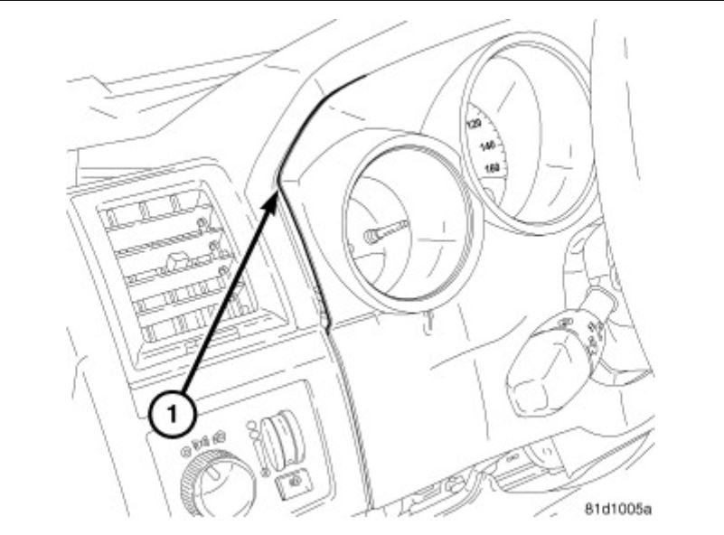 4. Using a trim stick or equivalent, gently pry (1) along the edge of the trim to remove the instrument cluster trim.