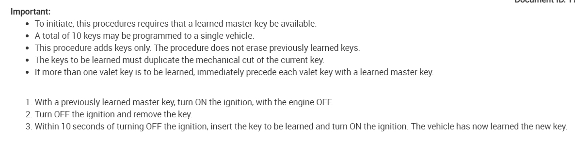 Lost transponder. I have been trying the relearn procedure the light with the car and lock has never gone off during the relearn, also the service theft deterrent system is on. Also, I've been trying the relearn procedure over and over with no success. This is the second ignition that has been installed due to losing the original key. The first time the relearn procedure worked fine.