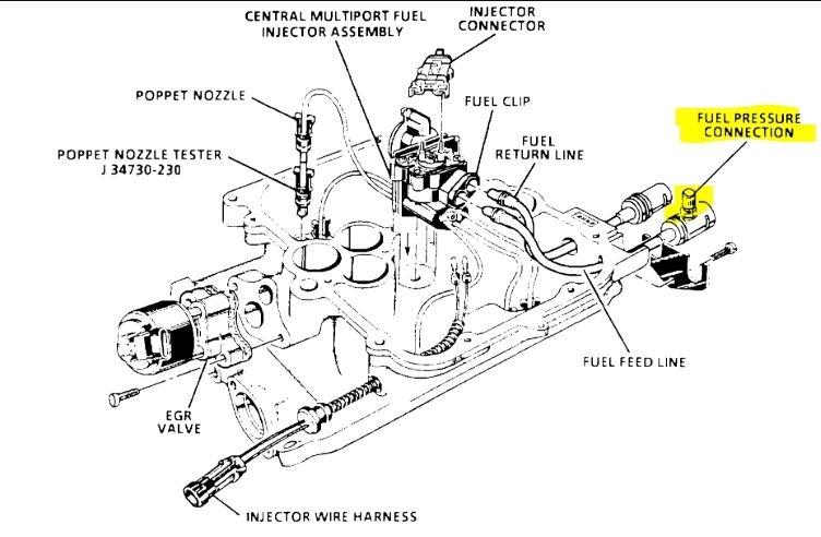 Here are the directions specific to your vehicle for testing fuel pressure. In the first pic below, I highlighted the place where the fuel pressure gauge will attach. I realize most people don't own one, but most parts stores will lend you one. Also, the manufacturer's specs for pressure are listed in the directions.