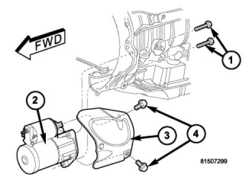 3. Position starter motor (4) to transmission.