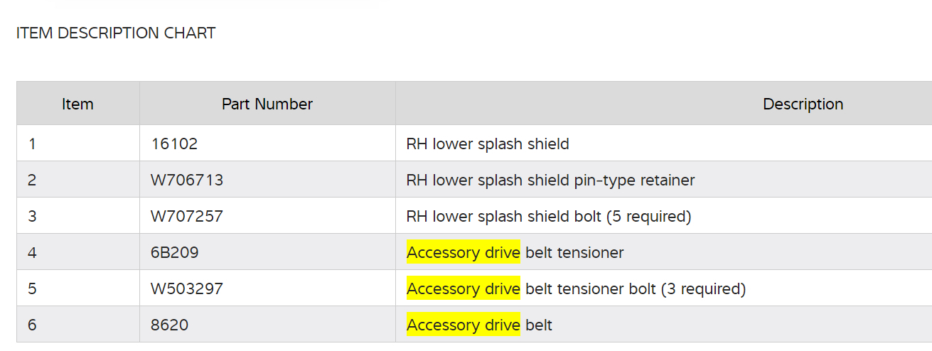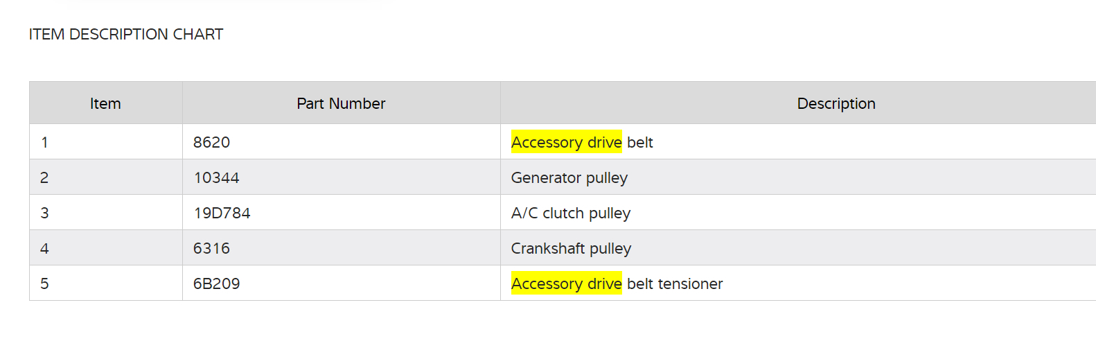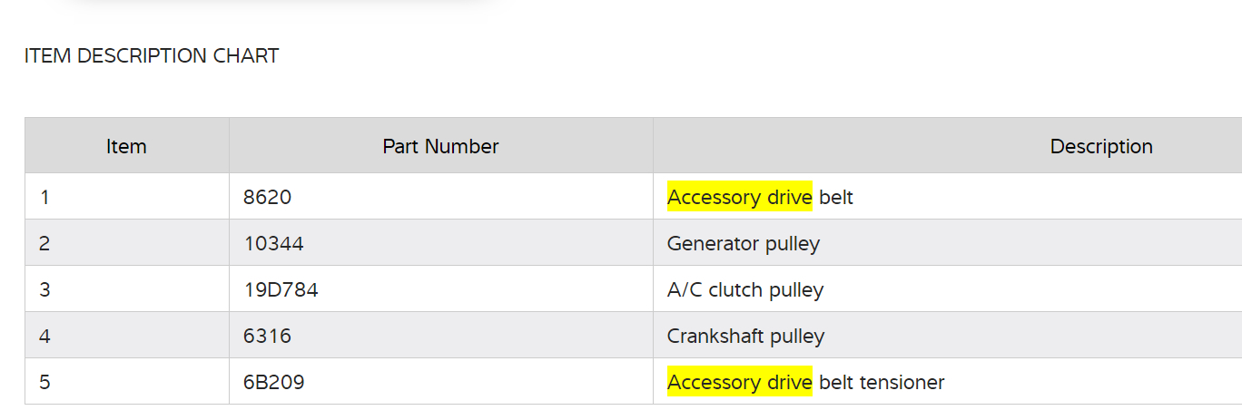 I have also included diagrams to the drive belts on your vehicle in the diagrams down below. Please look for a bearing that has play, frozen or freezing up, or smelled burnt and get back to us with what you are able to find out.