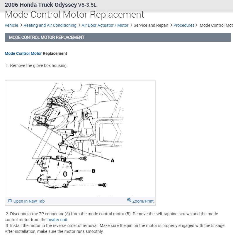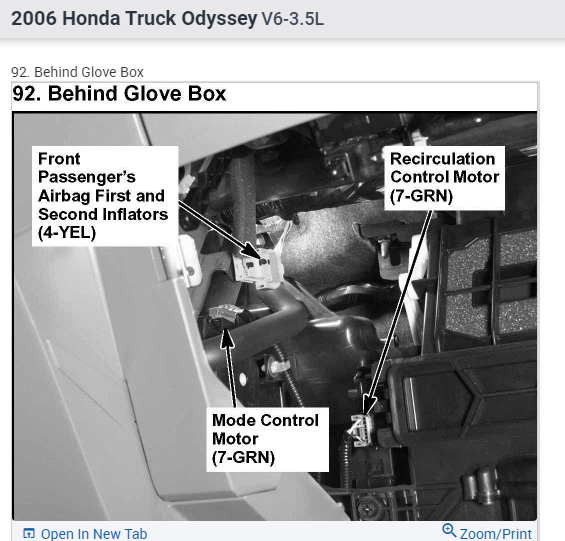 The mode door actuator is located behind the glove box (see picture below).