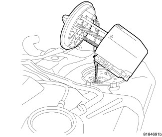 Drain fuel from fuel pump module. Do not spill fuel in interior of vehicle.