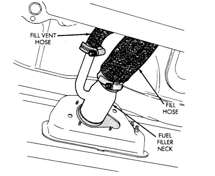 4. Disconnect the fuel fill hose, and vent hose from the filler neck.