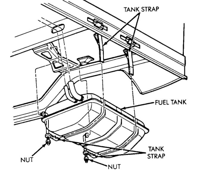 11. Remove the tank support strap nuts. Move the straps away from tank.