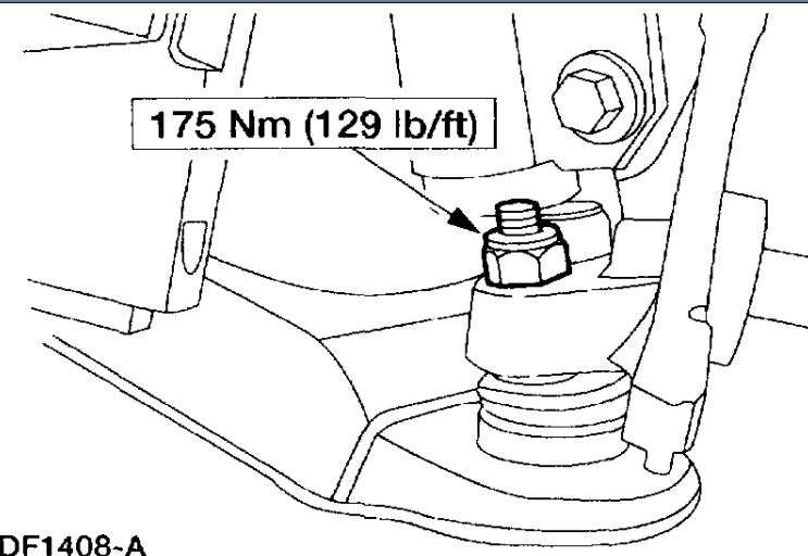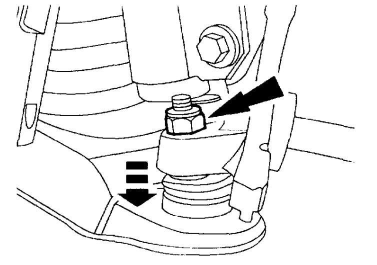 5. CAUTION: To prevent damage to the front suspension lower arm do not remove the nut from the ball joint at this time.