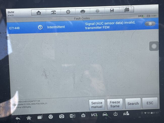 Takes forever to get some lukewarm to come out. Blower works fine; these are the codes I found. When I deleted them, I got one back which is in the picture that only shows one code (AUC). Can this affect heat? Coolant is full. I thought about the heater control valve, but I have not seen it on the driver side under the hood like most BMWs. Can you ee if there is one and where it is? Hoses to the firewall I would say are warm. I also suspect the thermostat but no codes or indications.