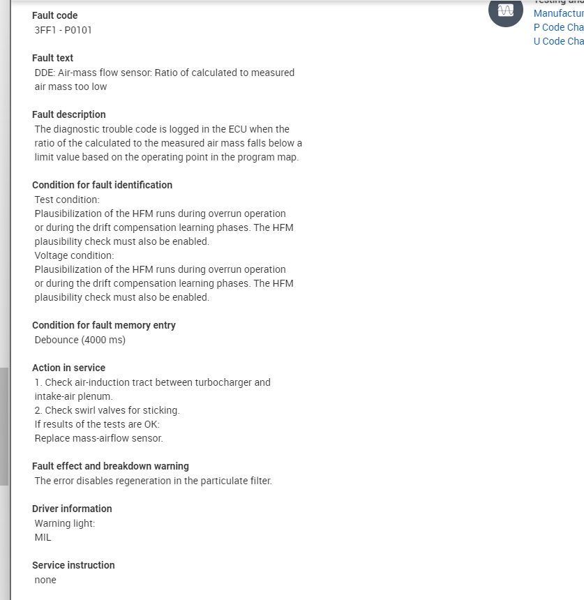 Basically, the engine can't tell that there is soot build up causing a restriction, so it thinks that the MAF is wrong.