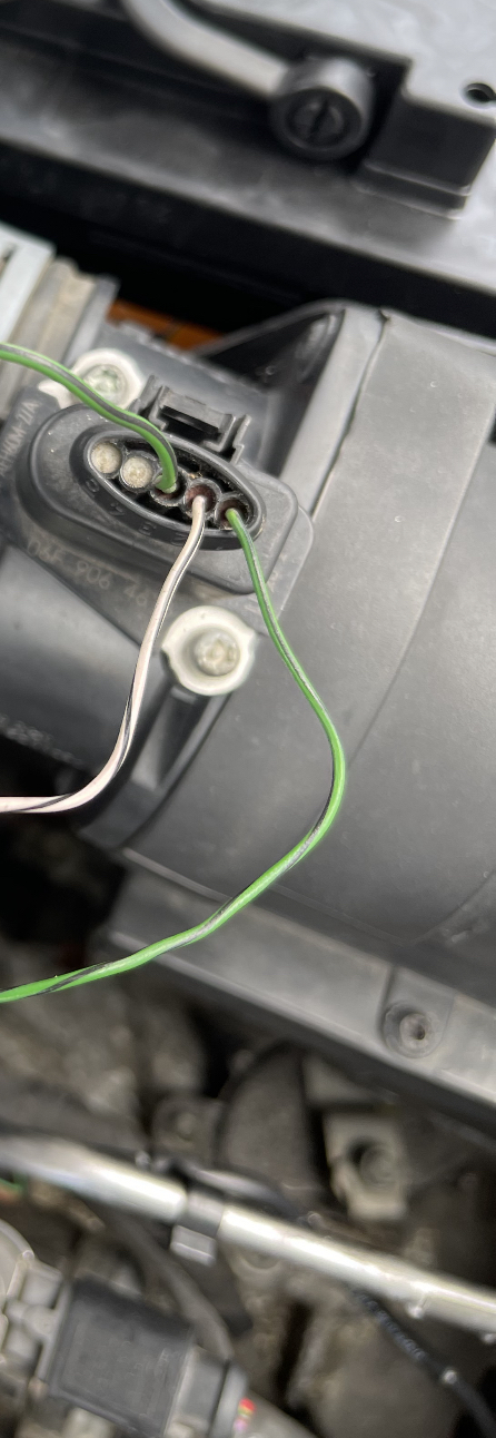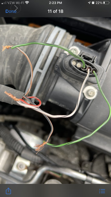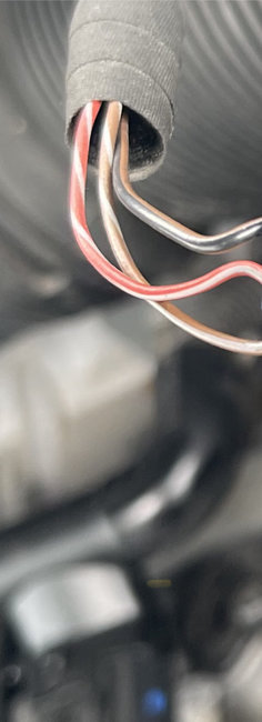 We know that the center wire is the ground so, on the factory side it should not go with the red/white wire, as that should be the power supply for the sensor. You can also use a voltmeter to see if you are getting power to that wire. The power wire will provide power to the sensor and the signal wire will give signal from the sensor.