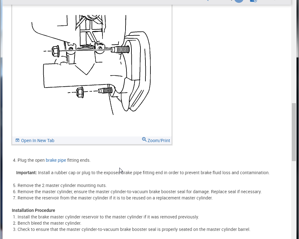 Often times, a new master cylinder will not come with the brake fluid reservoir. Here are the directions to remove and reinstall the one you have on the old MC.
