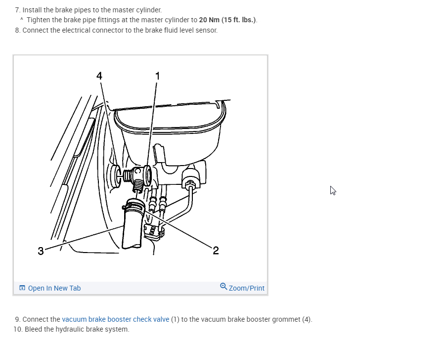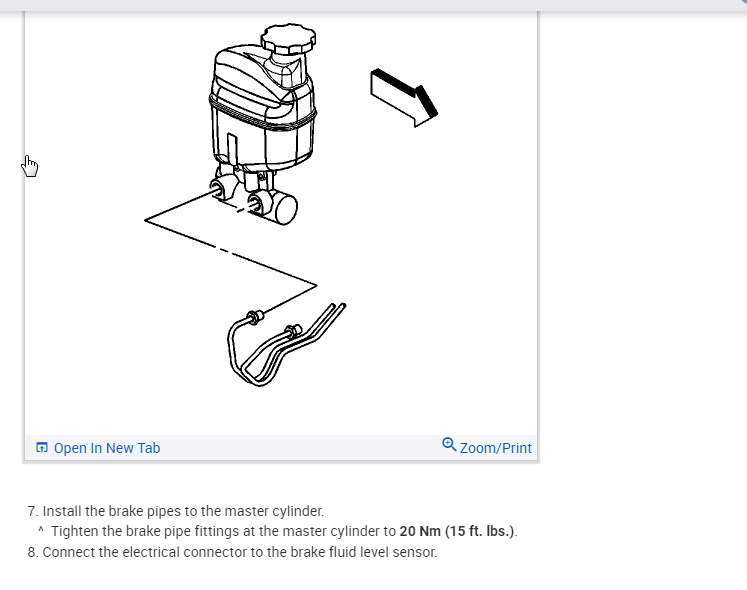 Tighten the brake pipe fittings at the master cylinder to 20 Nm (15 ft. lbs.).