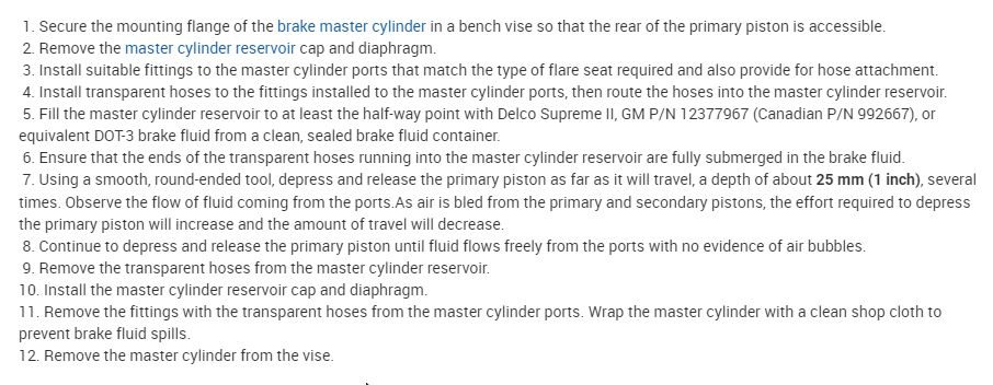 Vehicle Brakes and Traction Control Hydraulic System Brake Bleeding Service and Repair Procedures Master Cylinder Bench Bleeding